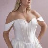 Dorothy MG208 is a Mikado ballgown with a boned bodice, detachable off-shoulder straps, and a soft pleated full skirt. A timeless look with modern elegance.