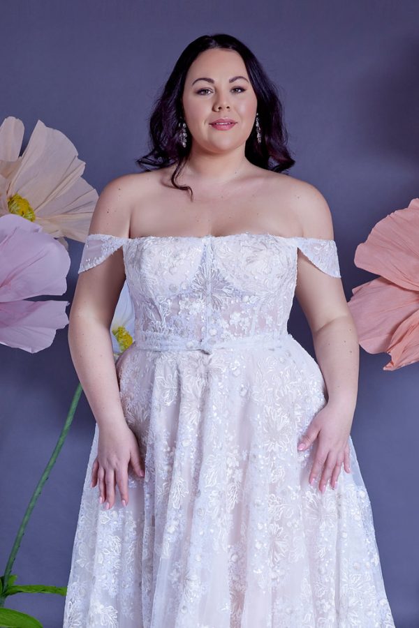 Designed with romantic off-the-shoulder straps, the dress frames your shoulders gracefully, offering a feminine and timeless appeal. Additionally, the sweetheart neckline enhances your décolletage, creating a flattering silhouette that suits every bride.
