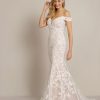 Fishtale gown all over lace with lace trail on skirt. Zip back.