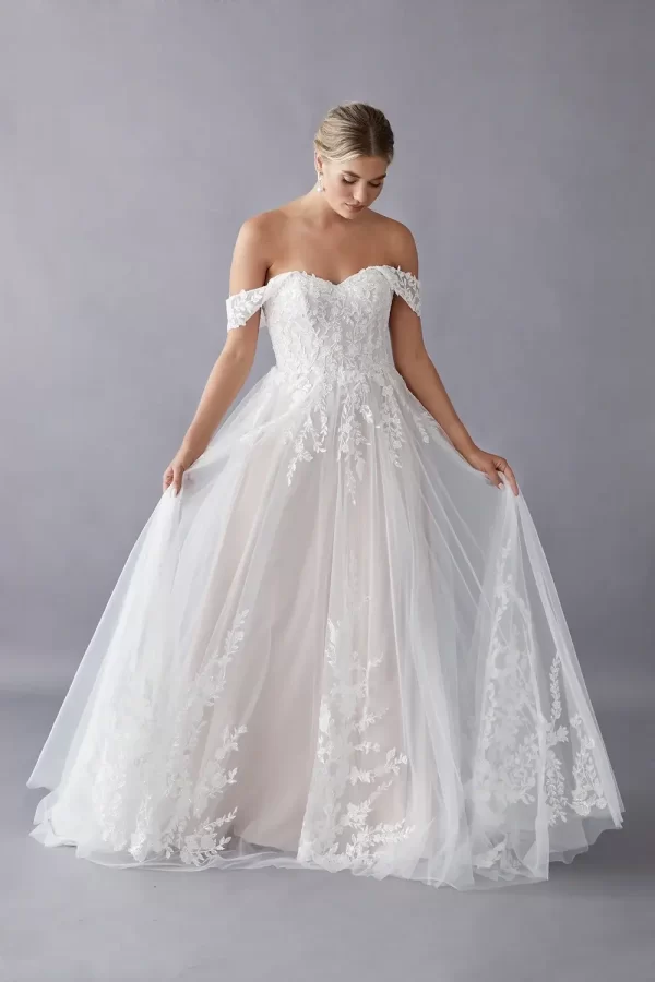 The Fergie WS104 from the White Studio Collection is a true expression of refined elegance and effortless versatility. Designed for brides who appreciate timeless romance with a modern twist, this stunning A-line gown blends delicate lace and light tulle to create a graceful, floating silhouette that flatters every figure.