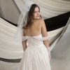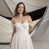 The Hollie MM213 wedding gown from Millie May offers a flattering channel-boned bodice, detachable beaded straps for versatile styling, and a flowing full gathered skirt. Perfect for brides seeking classic elegance with a modern twist.