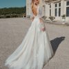 This gown combines bridal trends like Eye-Catching Details, Enchanting Details, Soft and Dreamy, and Graceful Classics. The bodice features delicate lace, shimmering sequins, and three-dimensional floral appliqués. Together, these elements create a romantic and sophisticated look.