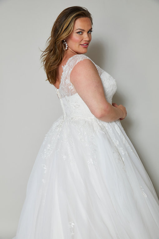 Step into your special day with elegance and grace in the Jessica WSP022 by White Studio London. This exquisite ballgown wedding dress is a true celebration of timeless bridal beauty, crafted with intricate beaded lace that adds a soft shimmer and romantic texture to every detail.