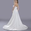 In addition, a chic side split introduces a modern edge, allowing just the right amount of leg to show with each step. Thoughtfully designed with hidden pockets, this gown seamlessly combines style with practicality, giving brides a discreet yet functional place to carry small essentials without compromising elegance.