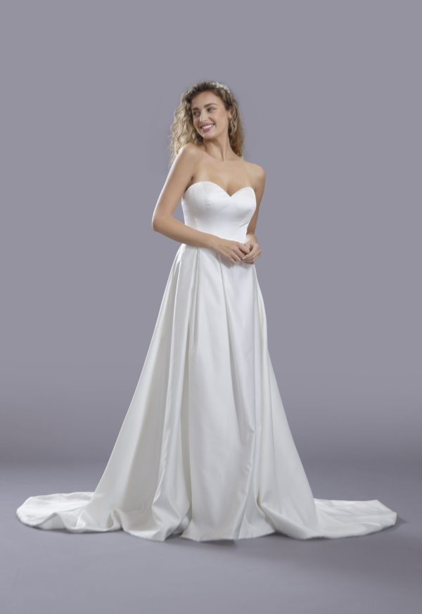 Discover the perfect balance of timeless elegance and modern bridal fashion with the Joanna MM187 wedding dress from the Millie May Collection. Designed for brides who want to feel both classic and contemporary on their big day, this gown features a beautifully sculpted sweetheart neckline that highlights the décolletage and offers a romantic, feminine touch.