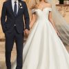 Kennedy – Modern Pearl Mikado Ball Gown Wedding Dress with Sweetheart Neckline and Off-Shoulder Straps