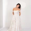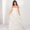 Feel like royalty on your wedding day in the breathtaking Leonie R1534 by White Rose. This enchanting off-shoulder A-line wedding dress combines timeless romance with modern sophistication, offering a look that is both elegant and unforgettable.