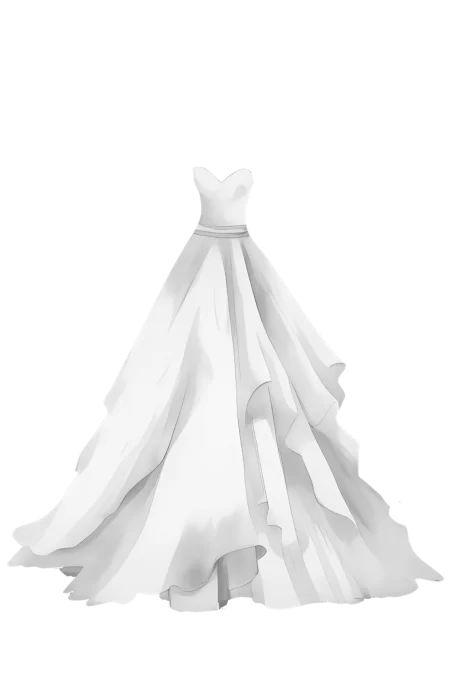 The Basque waistline defines your shape, elongating the torso and enhancing natural curves. From here, the voluminous A-line skirt flows gracefully with each step. Light layers of tulle add movement and create a soft shimmer in the light.