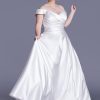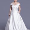 The Lorraine WP662 is a satin ballgown with a ruched sweetheart bodice and elegant off-the-shoulder straps. A timeless choice for brides seeking classic beauty and graceful style.