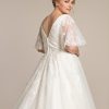 This gown offers two beautiful looks in one. The detachable flutter sleeves add a soft, whimsical touch during the ceremony. Then, simply remove them to reveal a classic strapless silhouette for the reception. This versatile feature lets you change your style effortlessly, perfect for brides who want both elegance and practicality.