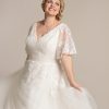 Lisa MG105 is an embroidered tulle ballgown with a flattering V-neckline and detachable flutter sleeves—romantic, lightweight, and beautifully versatile.