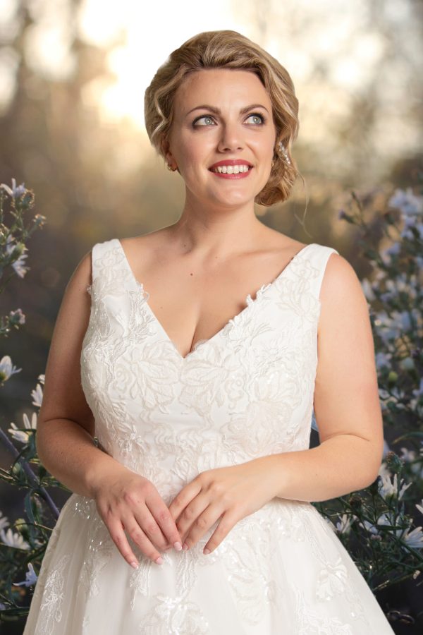 The Lisa MG105 by Millie May Bridal is a stunning wedding dress that combines romantic elegance with thoughtful design. Crafted from delicate embroidered tulle, this ballgown feels light and airy, allowing you to move freely and comfortably throughout your special day.