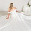 Olive MG164 is a classic satin A-line gown with a pleated bodice and side pockets. Graceful, stylish, and made for modern brides who value comfort and sophistication.