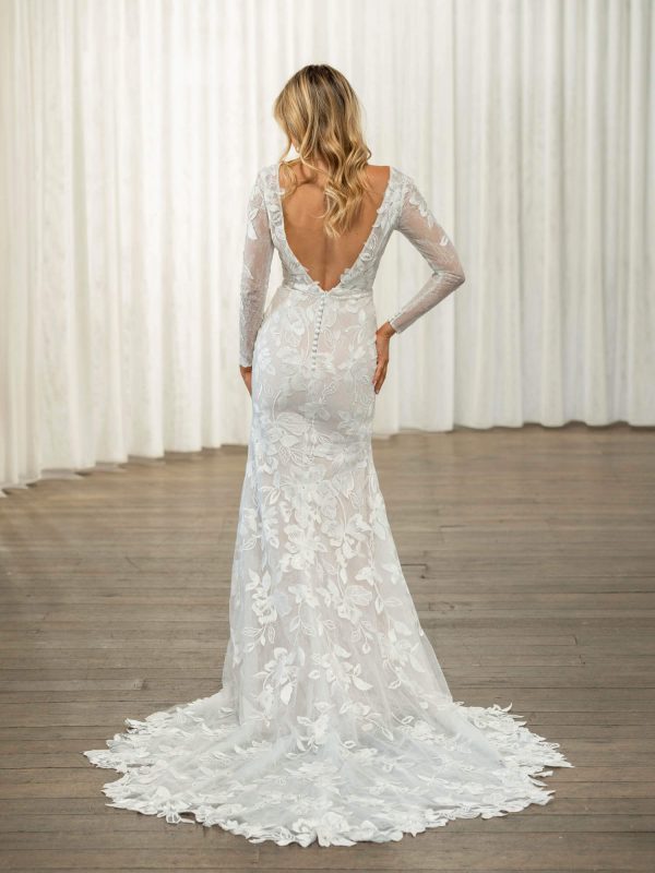 Tahlia by Madi Lane is the perfect choice for brides who desire elegance, sophistication, and a touch of modern flair. Featuring long sleeves, floral lace details, and a flattering fit-and-flare silhouette, this gown accentuates your natural beauty while providing the perfect blend of coverage and allure.